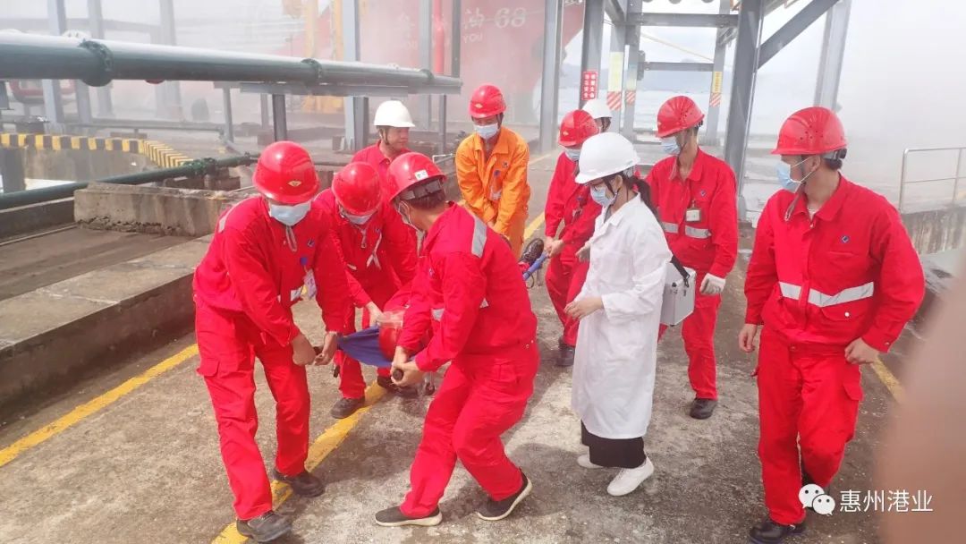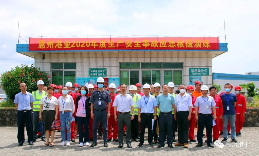 2020年6月24日上午,惠州港业在油气码头举行2020年度生产安全事故应急救援演练。公司徐志全总经理、殷琼毅副财务总监、陈荣发高级经理、蒋楠高级经理及各部门工作人员参加应急救援演练。应急救援演练成立安全事故应急临时指挥部,徐志全总经理担任总指挥,组织事故现场应急救援工作,按照预案分工,参演小组全体人员各司其职,行动迅速、紧张有序地投入抢险救援工作。