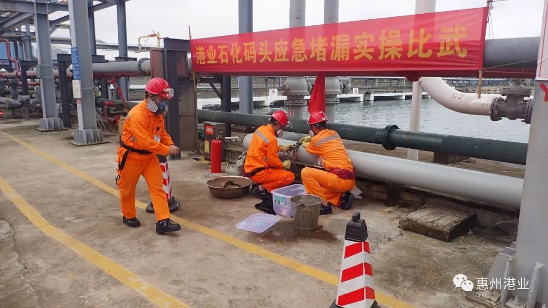 28日上午,应急堵漏抢险实操比武在油气码头举行。赛场上模拟管线发生泄漏,参赛人员立即穿戴好个人防护,迅速到达泄漏处,关闭相关阀门,用集油盆、桶、勺子盛接污油,用木糠、布碎、吸油毡吸油;根据现场判断采用钢带堵漏器进行堵漏,拉好警戒线,摆放好灭火器,检查堵塞码头围油坎;泄漏点堵好后,将木糠、布碎、吸油毡回收到集液盆,清理地面油污,摆放好工具。以上所有规范流程要求在10分钟内完成。每个班组人员分工合作,紧张有序熟练操作堵漏流程,五个小组圆满完成堵漏处置任务,检验并提高了参赛人员的应急协调和处置能力。