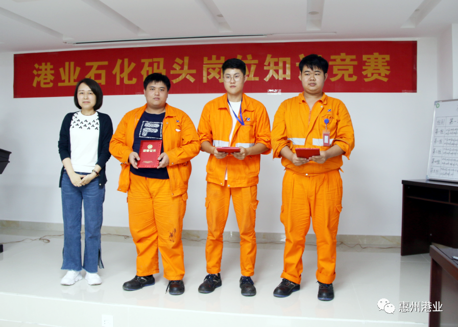 本次石化码头岗位知识竞赛由港业工会主办,人力资源部、石化码头操作部和油气码头操作部协办;竞赛由实操比武和知识竞赛两个项目组成,石化码头新入职的15位新员工每3人一组分5个小组参加,每一位参赛者都摩拳擦掌、认真拼搏,每一个小组均团结协作紧拧成一股绳,在赛场上一展身手为班组争光,展现了新一代港口人的良好精神风貌。